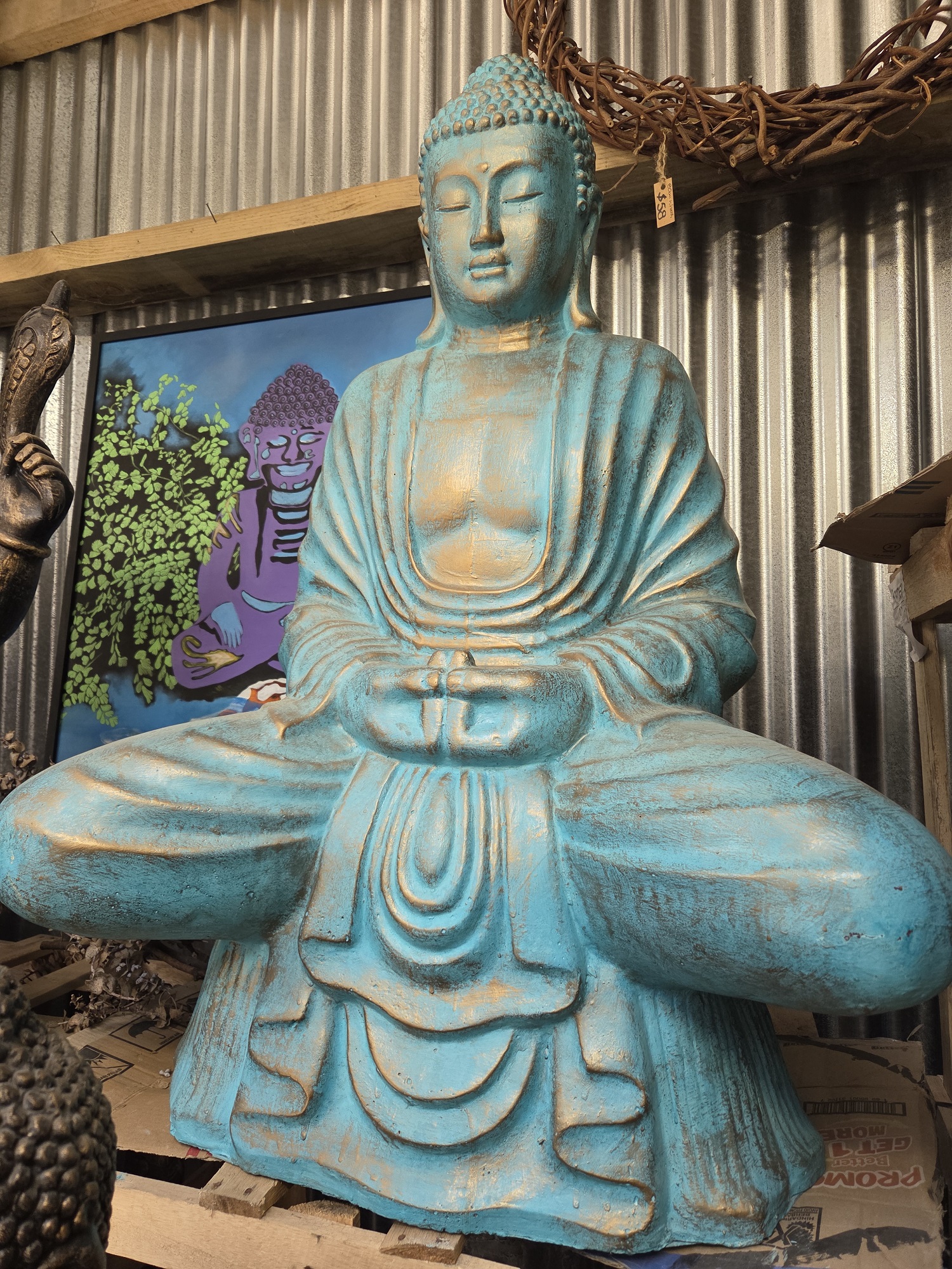 # 28 large. Sitting Buddha-blue/gold.