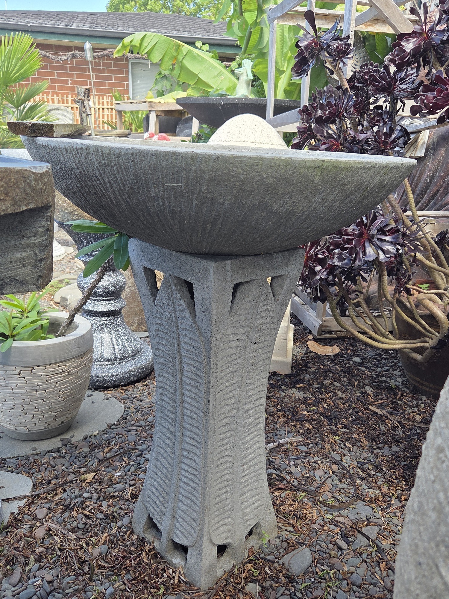 Concrete bird bath, comes in 2 pieces.