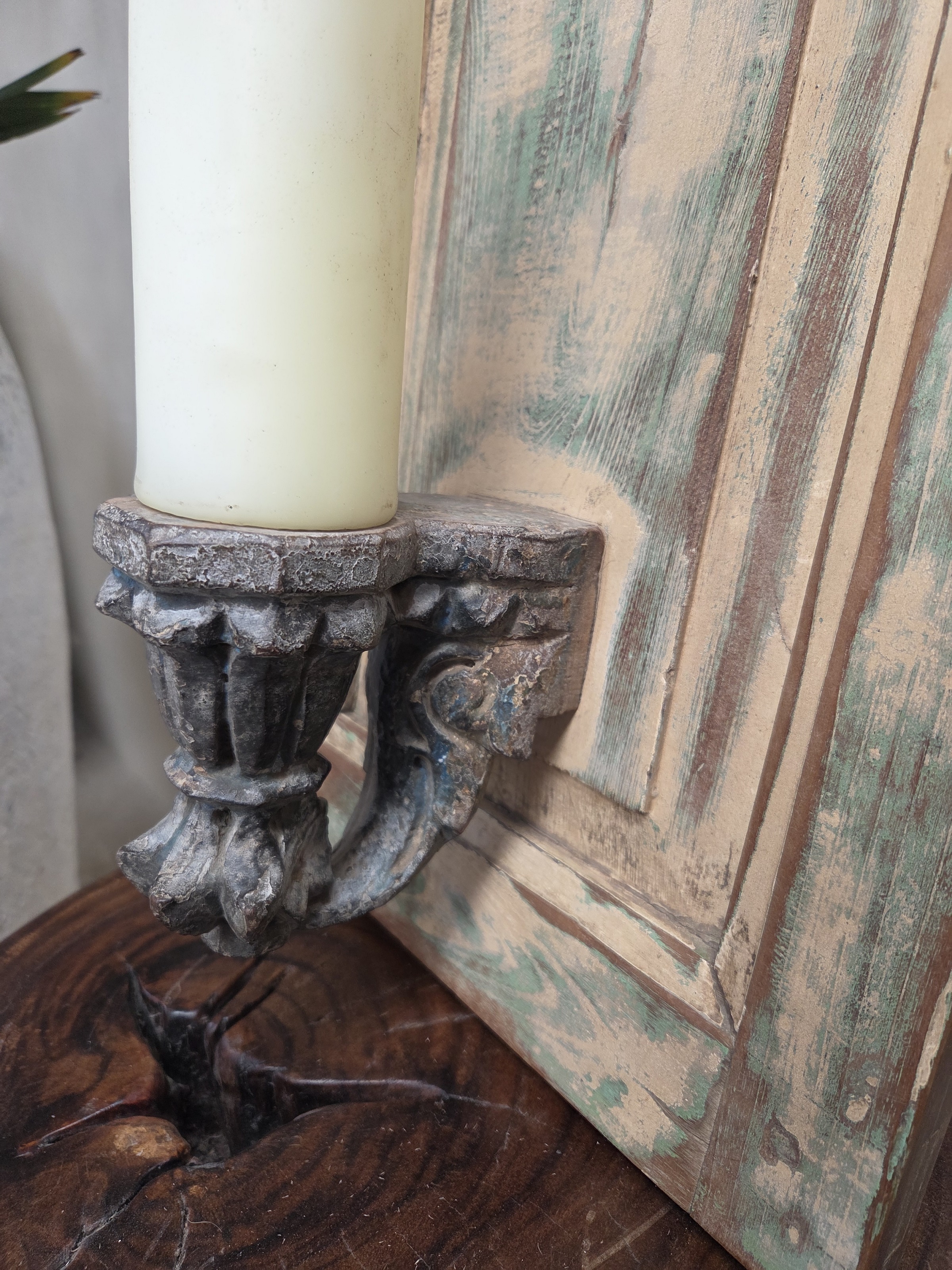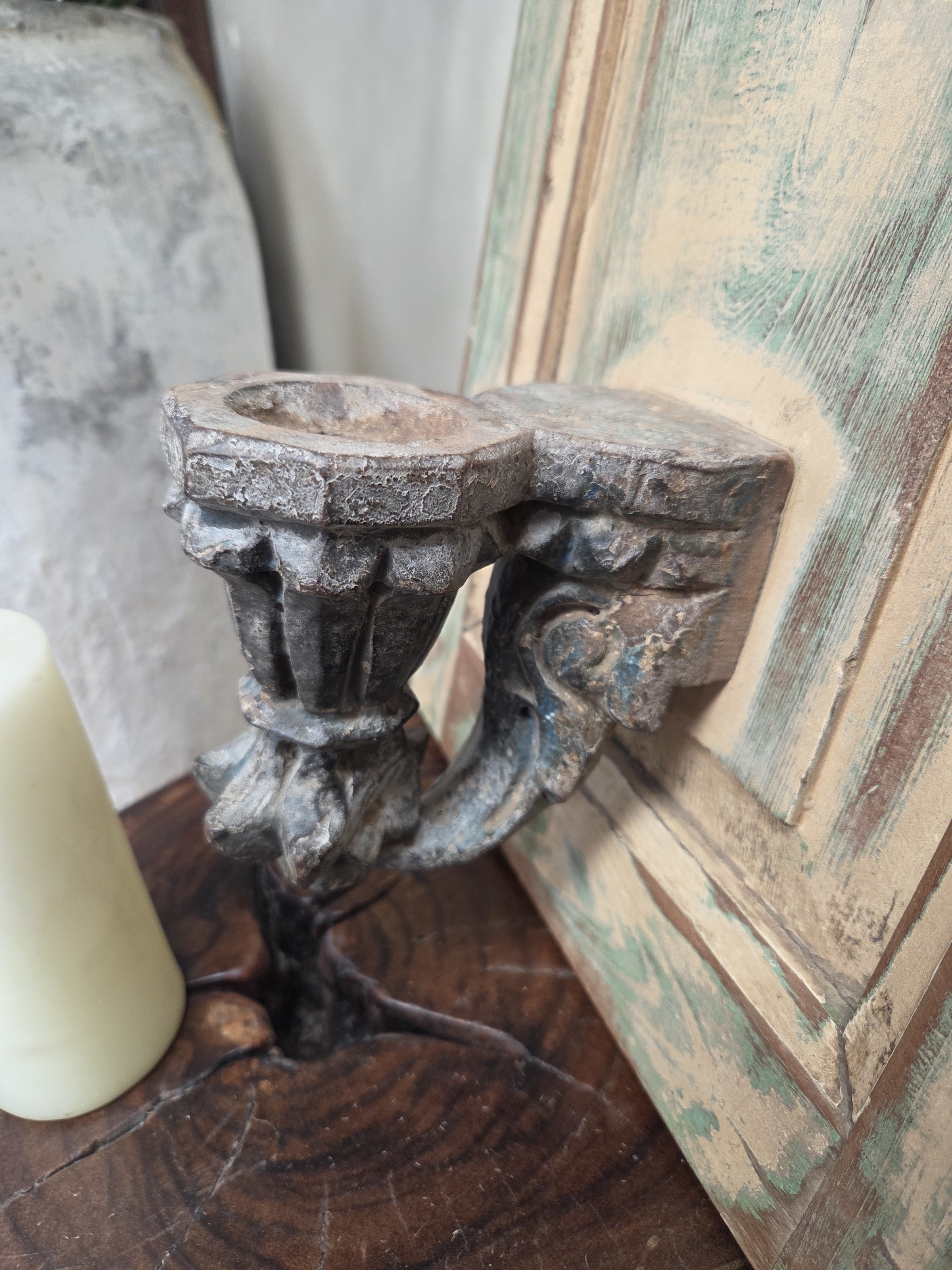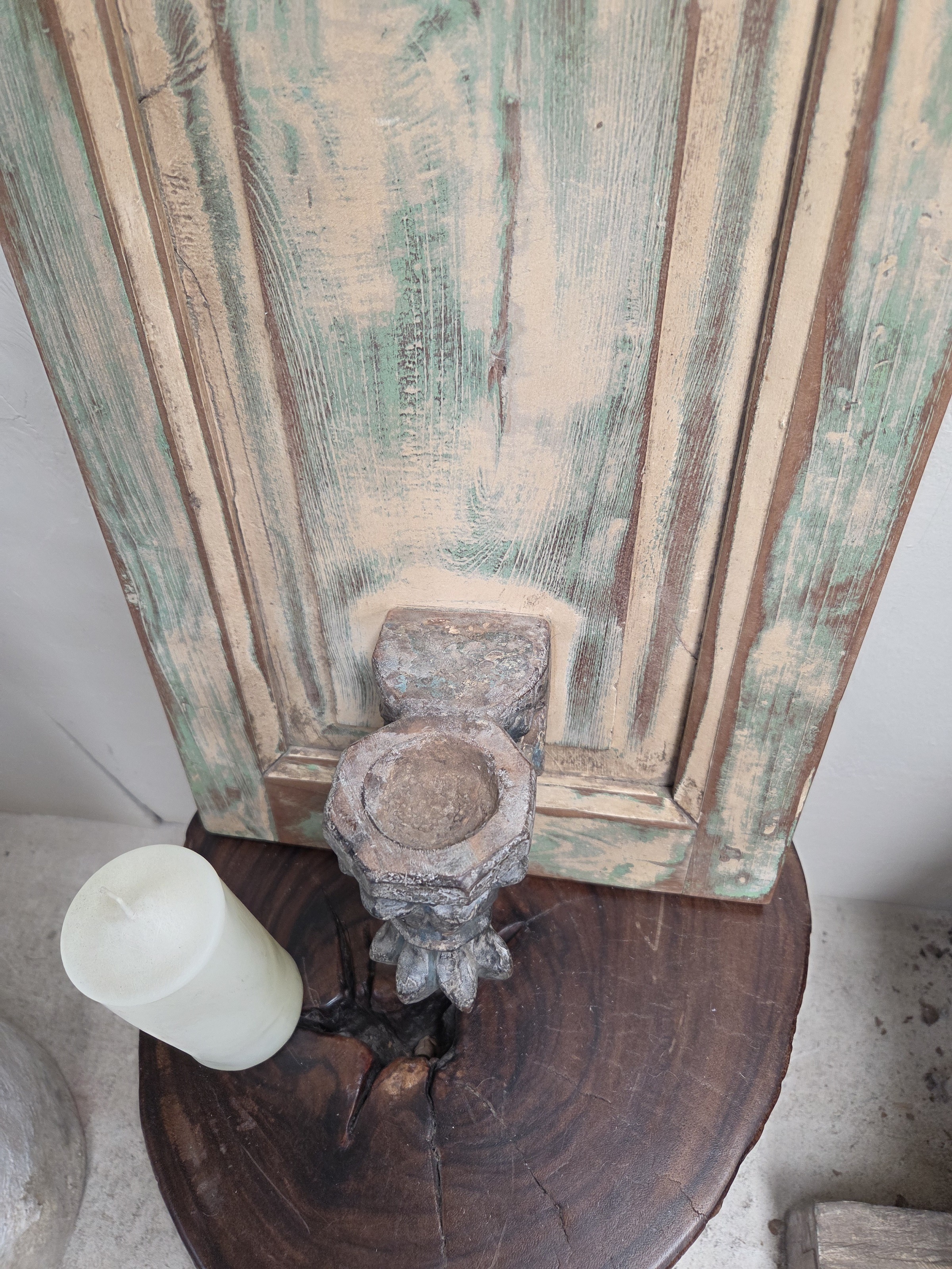 Vintage board with candle base. Candle not included.