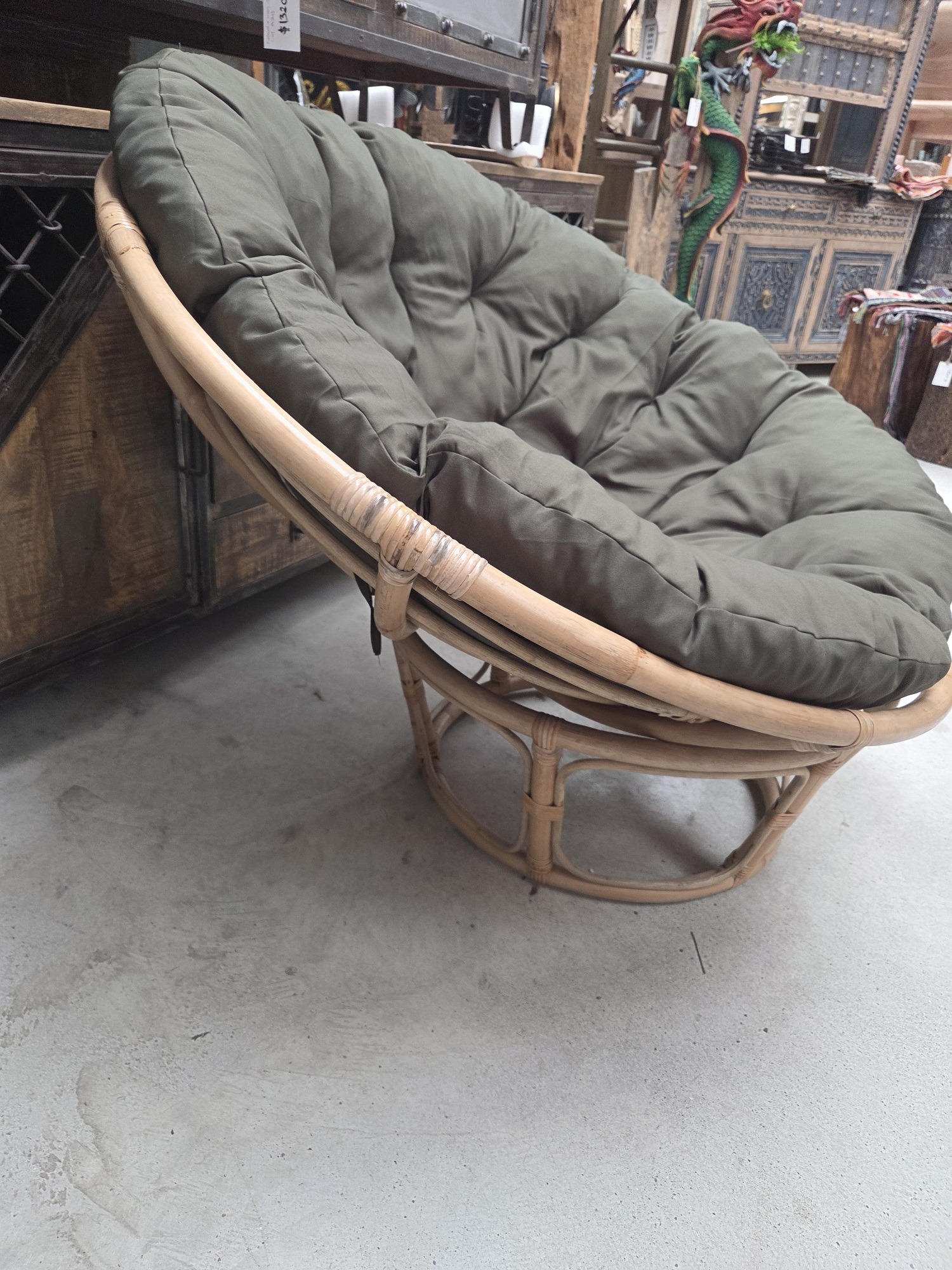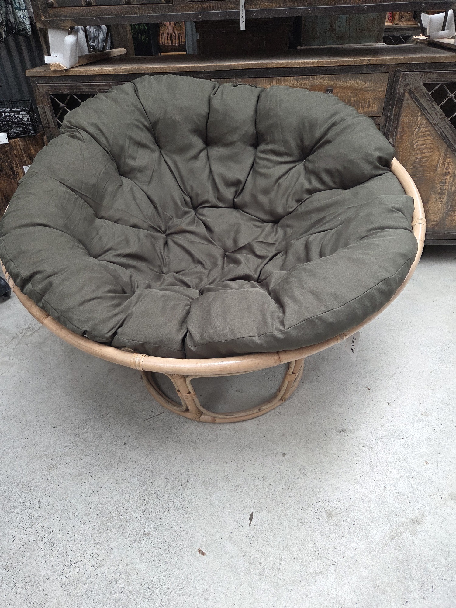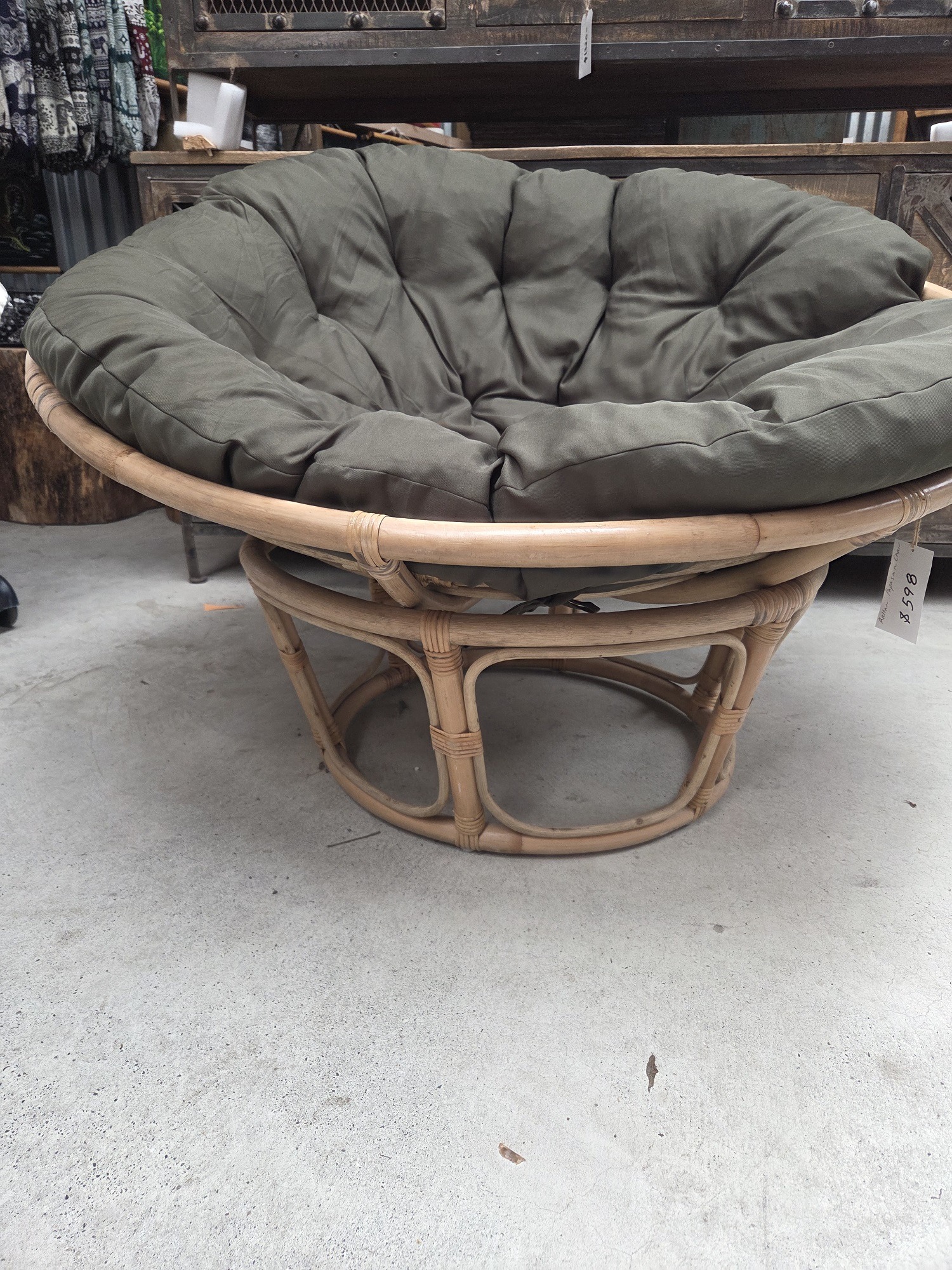 Real cane (not plastic coated) papasan chair complete with comfy padded cushion.