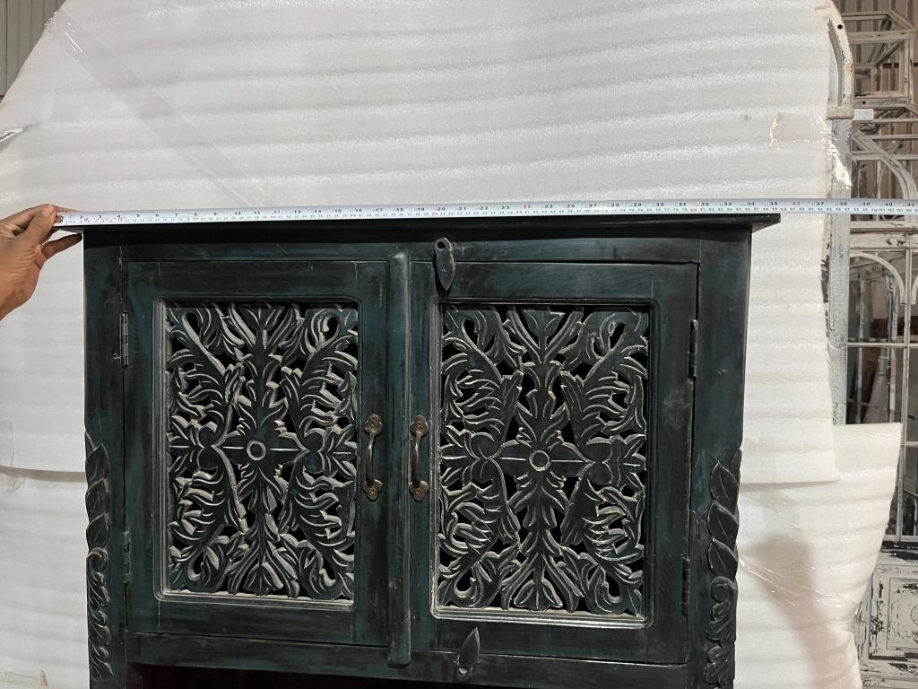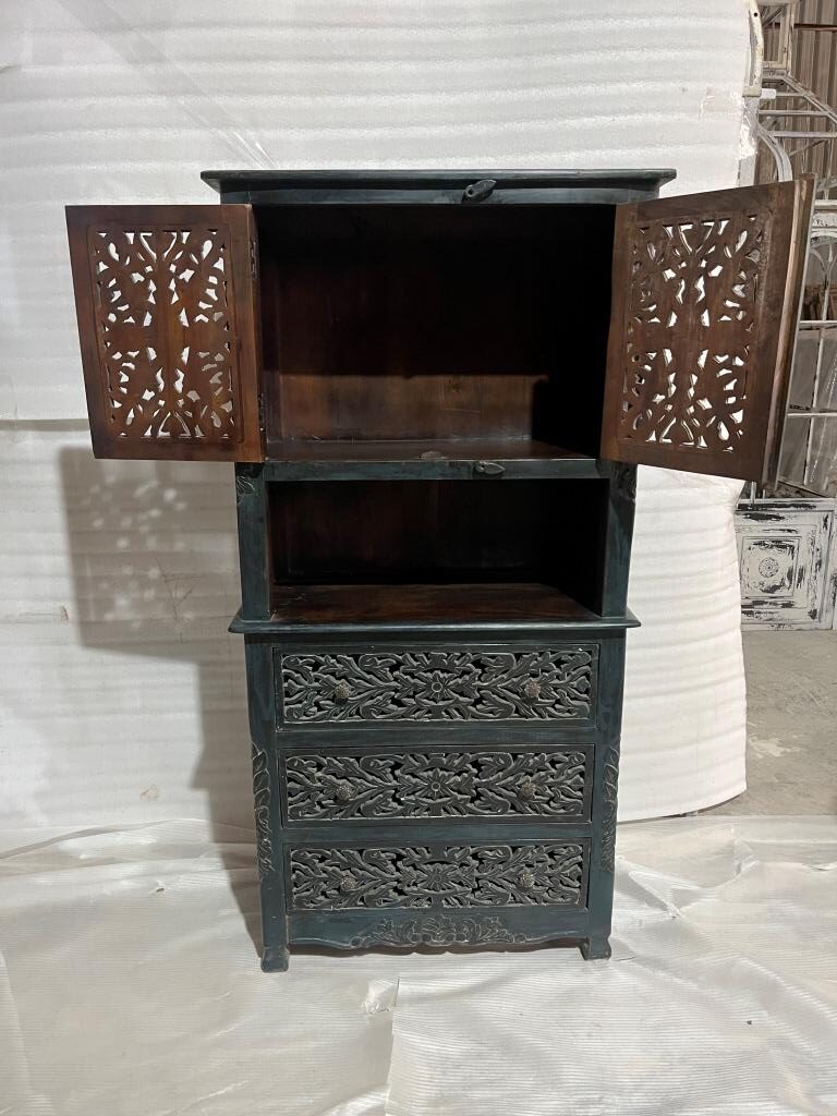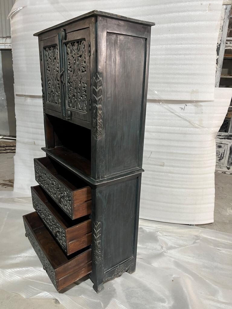 Lovely dark stained carved wood cabinet.