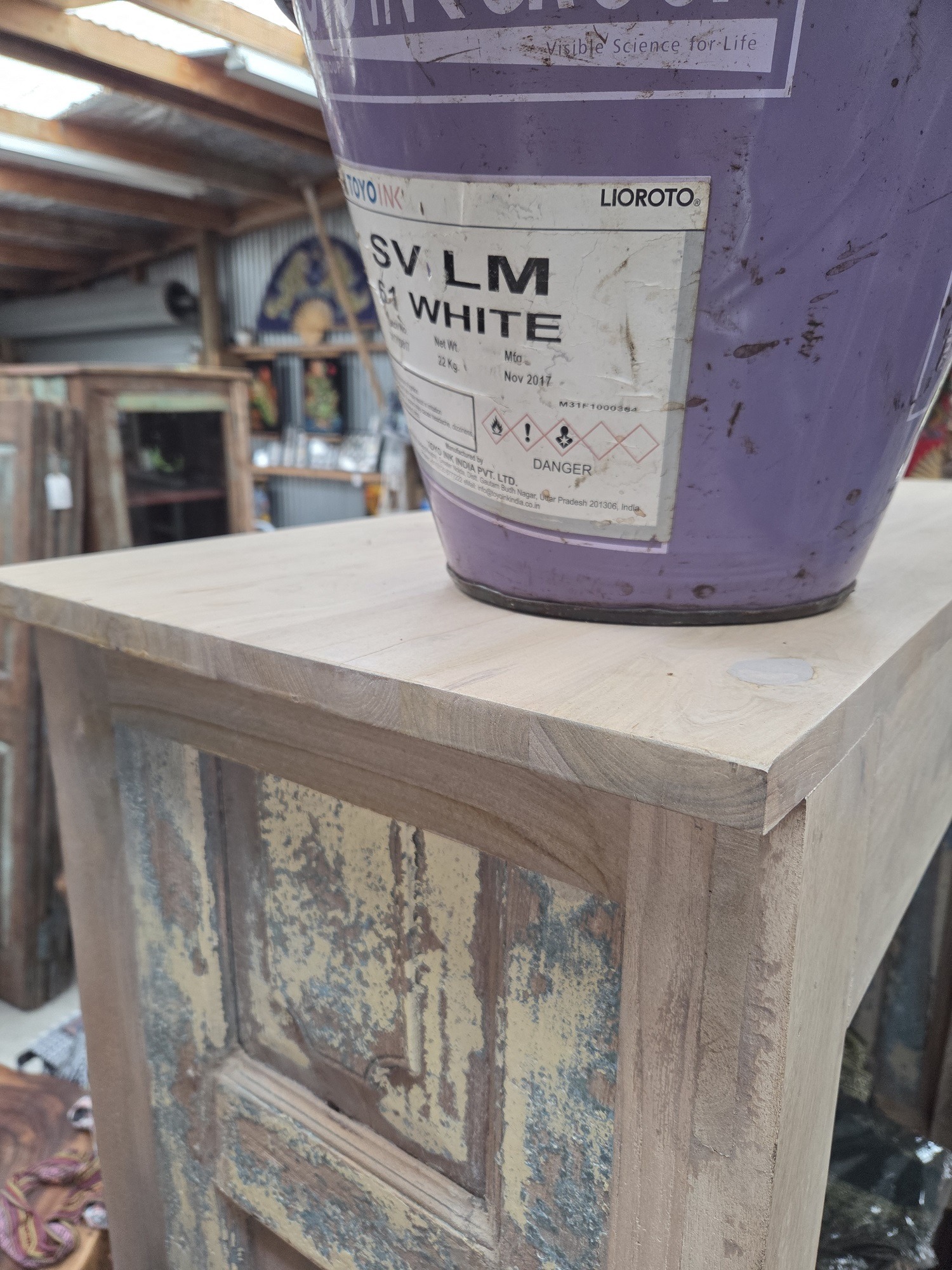 Newly made from re-purposed wood.