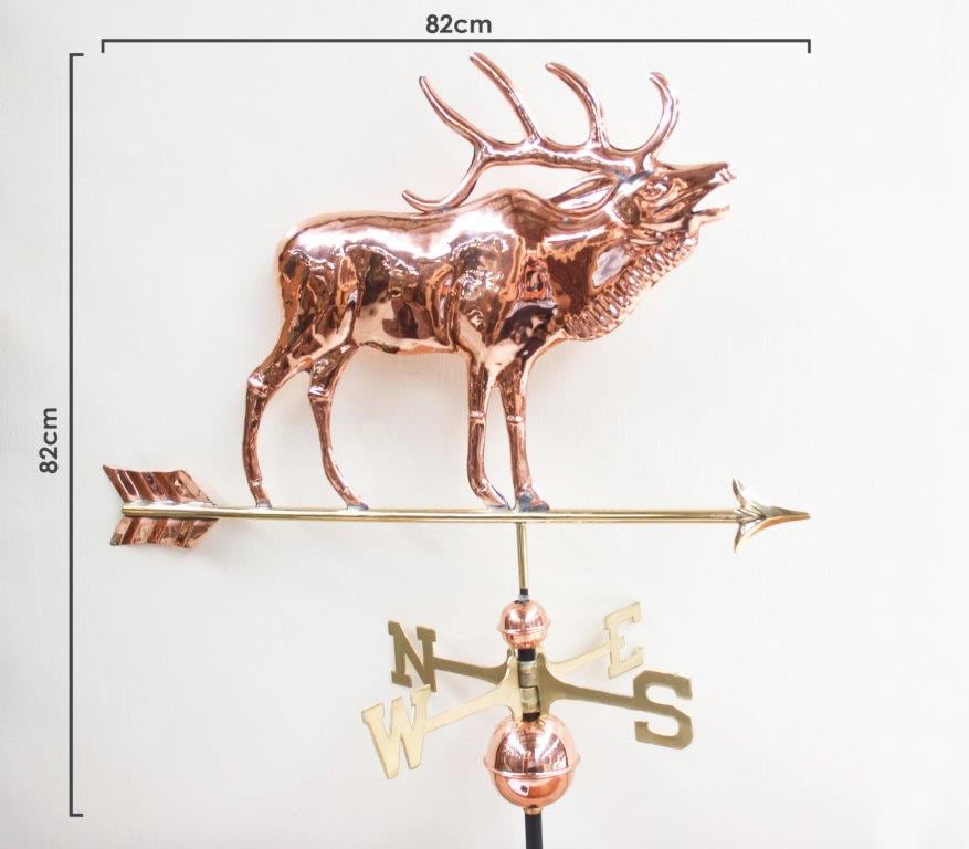 Enhance your home or garden with a stunning copper weathervane. Made from premium quality copper, our weathervanes are made to age gracefully, developing a rich patina over time that adds character and charm to any outdoor space. Perfect for rooftops, barns and garden posts. It’s meticulously crafted to provide both beauty and accurate wind direction. This Deer weathervane comes with a sturdy metal base plate making installation easy.
