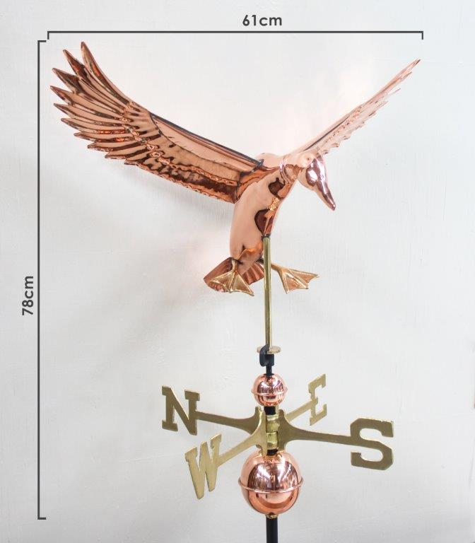 Enhance your home or garden with a stunning copper weathervane. Made from premium quality copper, our weathervanes are made to age gracefully, developing a rich patina over time that adds character and charm to any outdoor space. Perfect for rooftops, barns and garden posts. It’s meticulously crafted to provide both beauty and accurate wind direction. This Flying Duck weathervane comes with a sturdy metal base plate making installation easy.