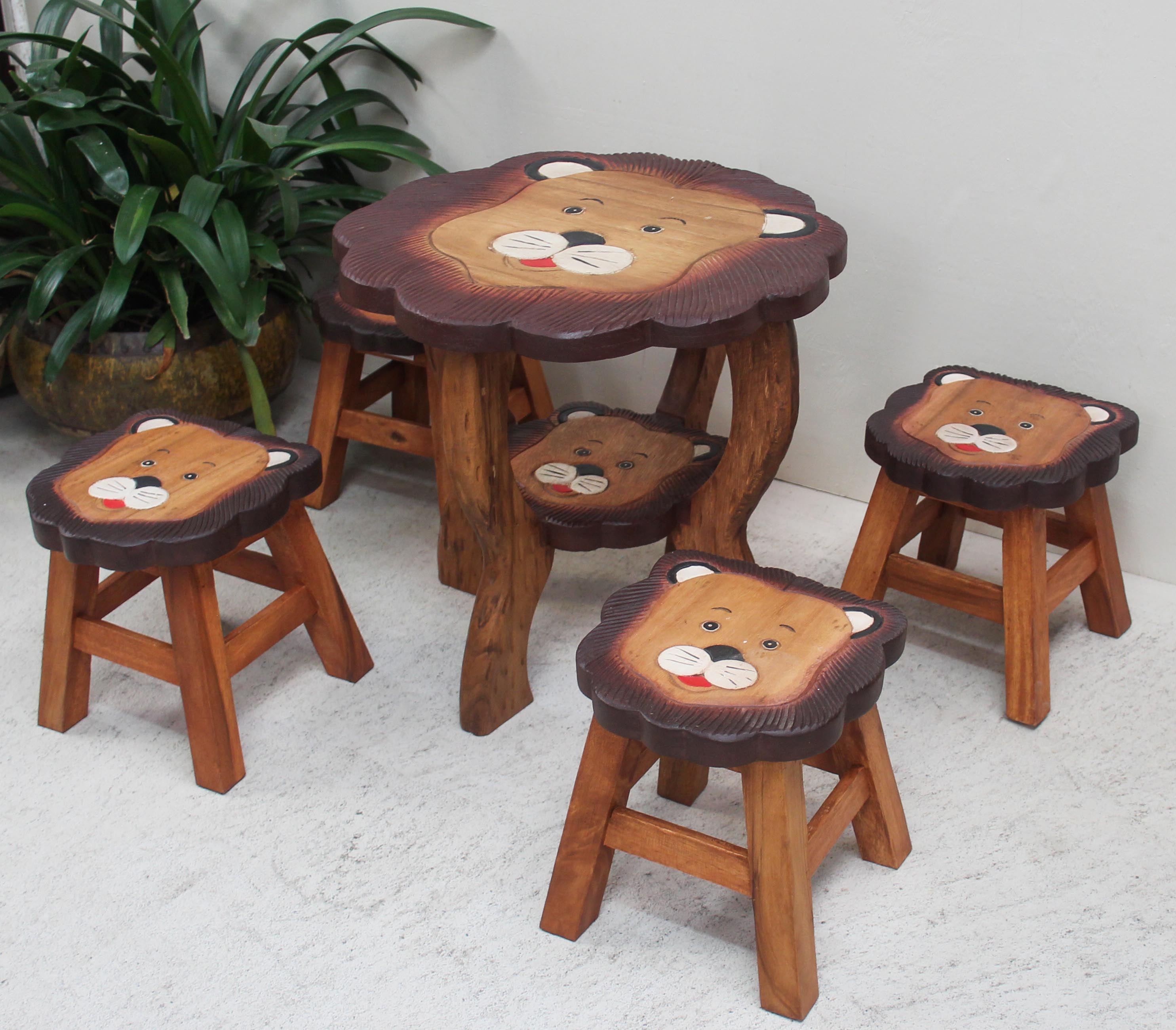 Our kids furniture is all manufactured by hand, from carving and assembling, to painting and waxing. It is primarily crafted from Monkeywood, also referred to as Suarwood. These along with other substainable options like reclaimed Teakroot, are chosen for their durability and strength. They are all a durable hardwood and are noted for their sturdiness. They are all hand painted with non toxic vegetable paints and dyes and can be something that can be passed down to future generations.