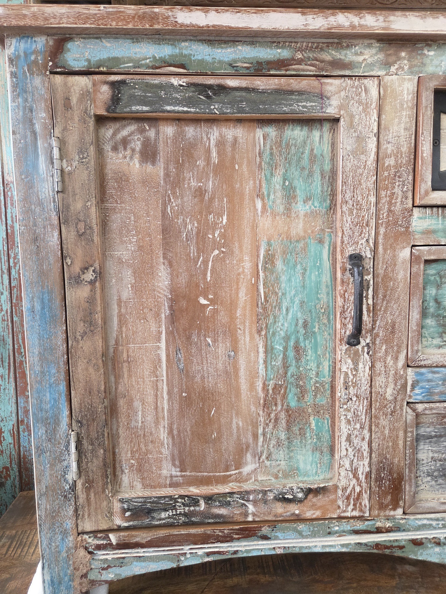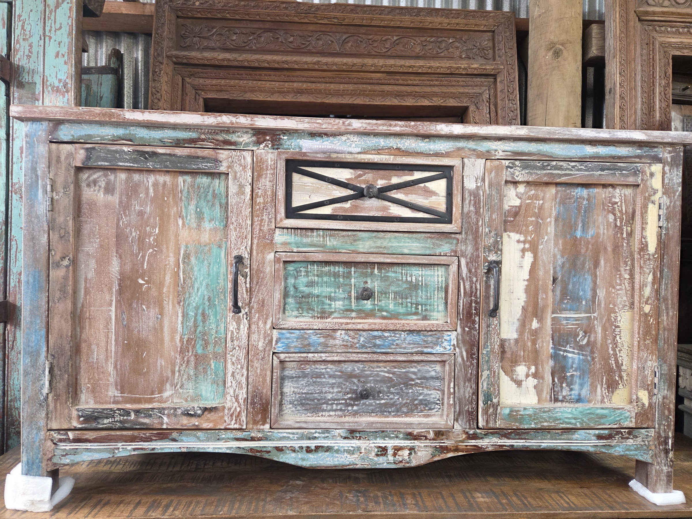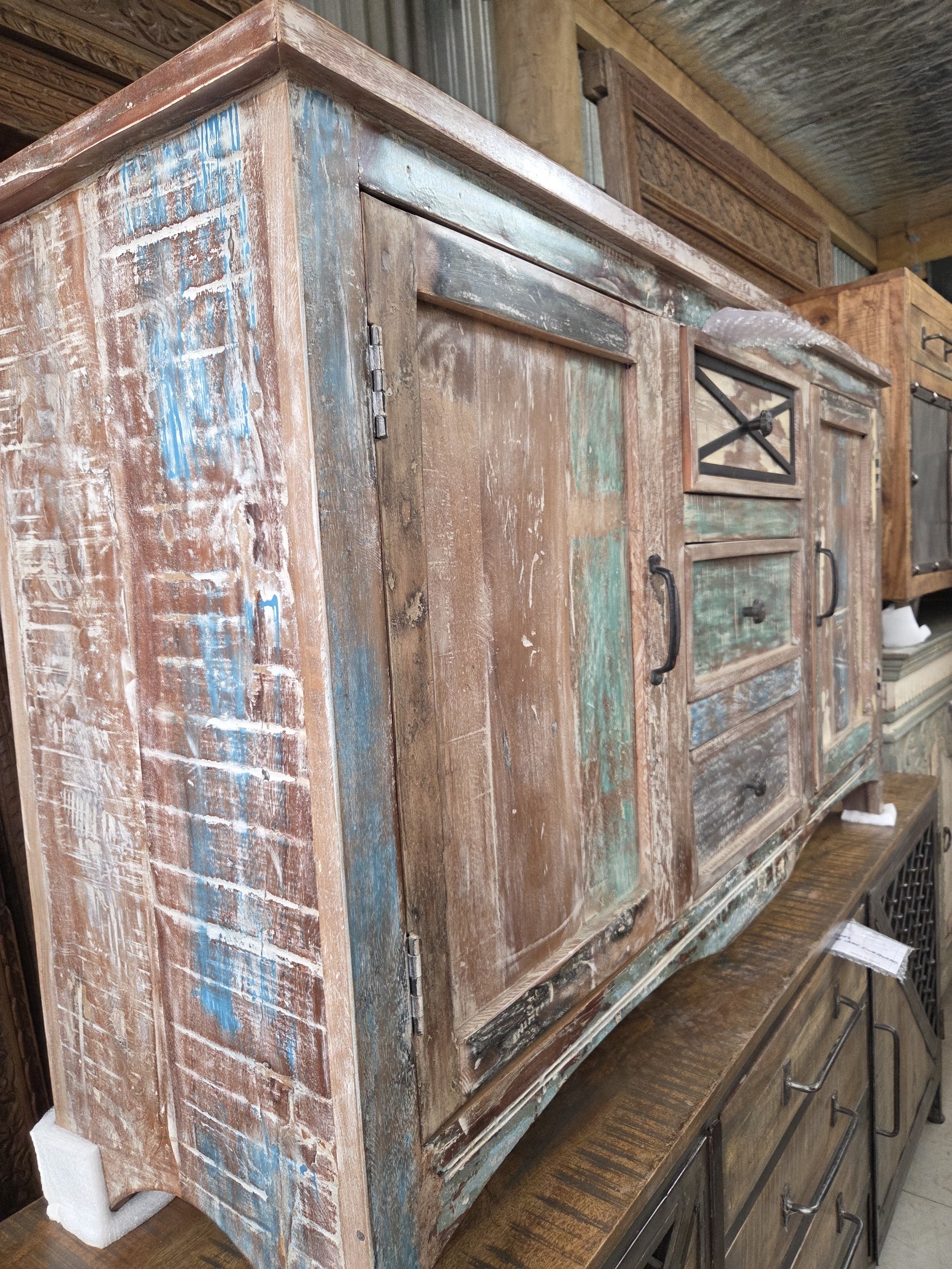 Colourful, large sideboard, newly made from re-purposed wood.