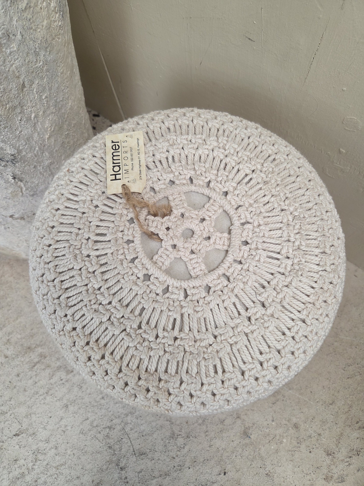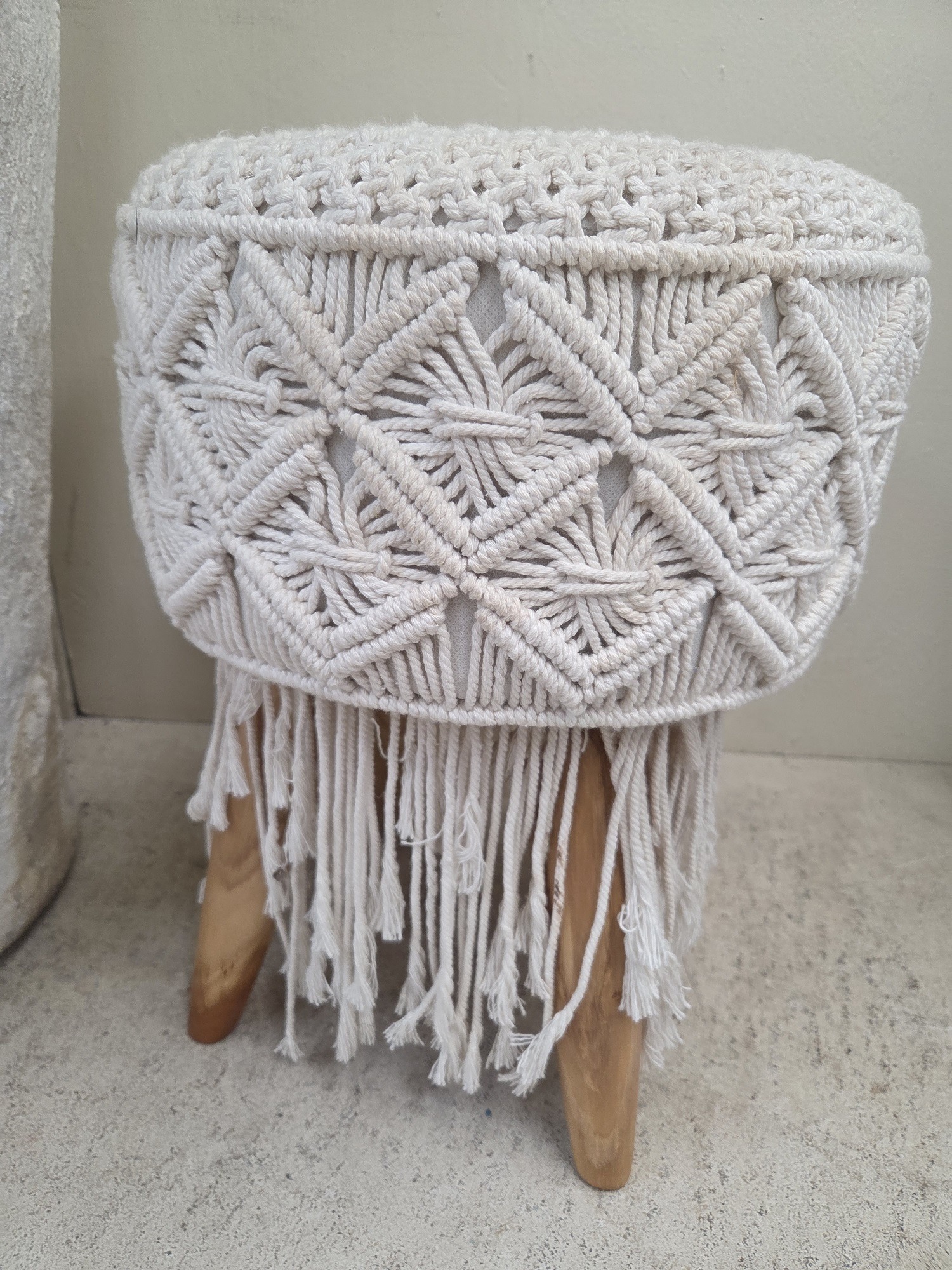 Lovely wood and macrame stool.