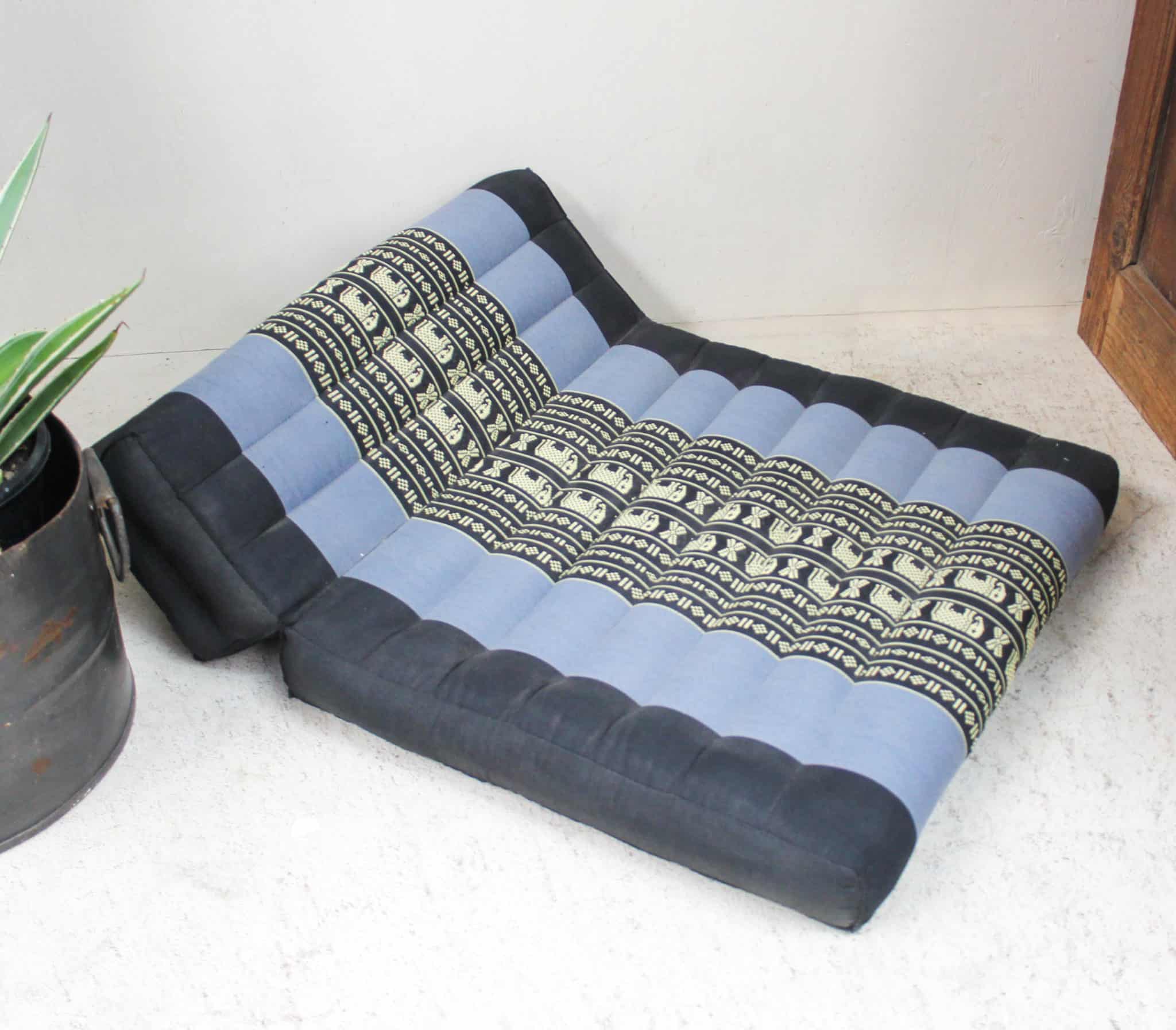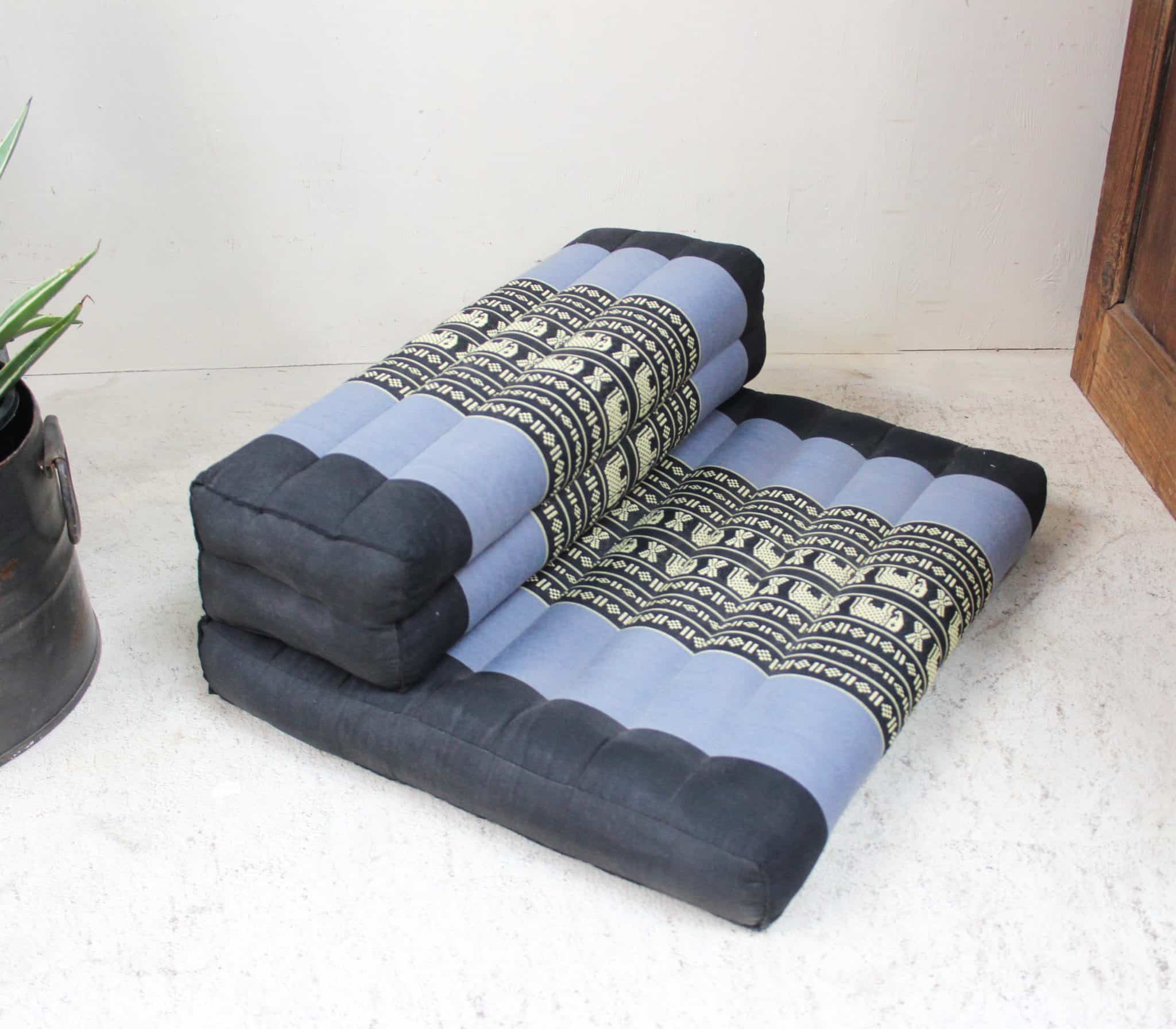 A meditation cushion covered in beautiful Thai silk fabric and filled with natural kapok fibre.