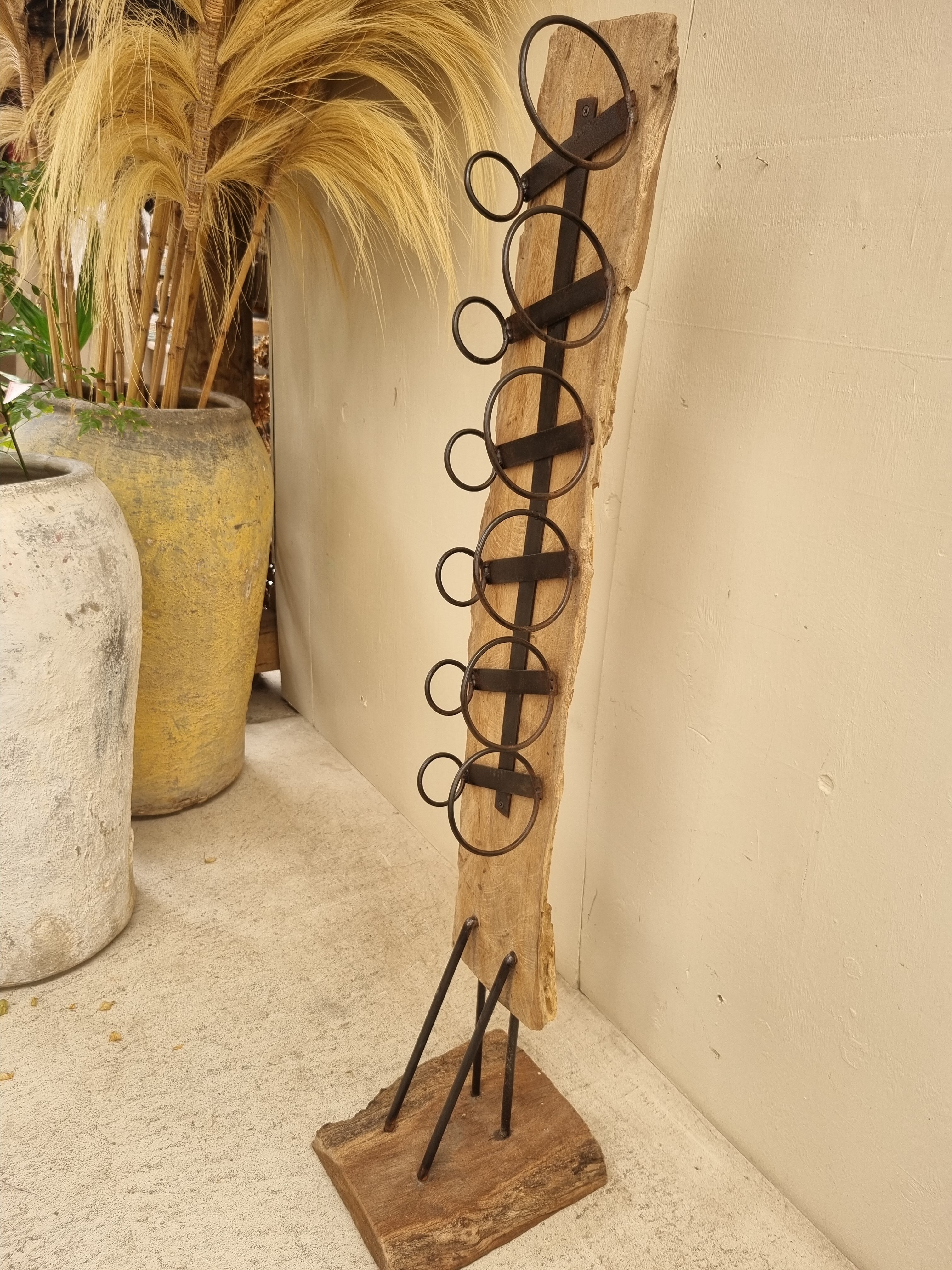 Teak sleeper wine rack. Holds 6 bottles.