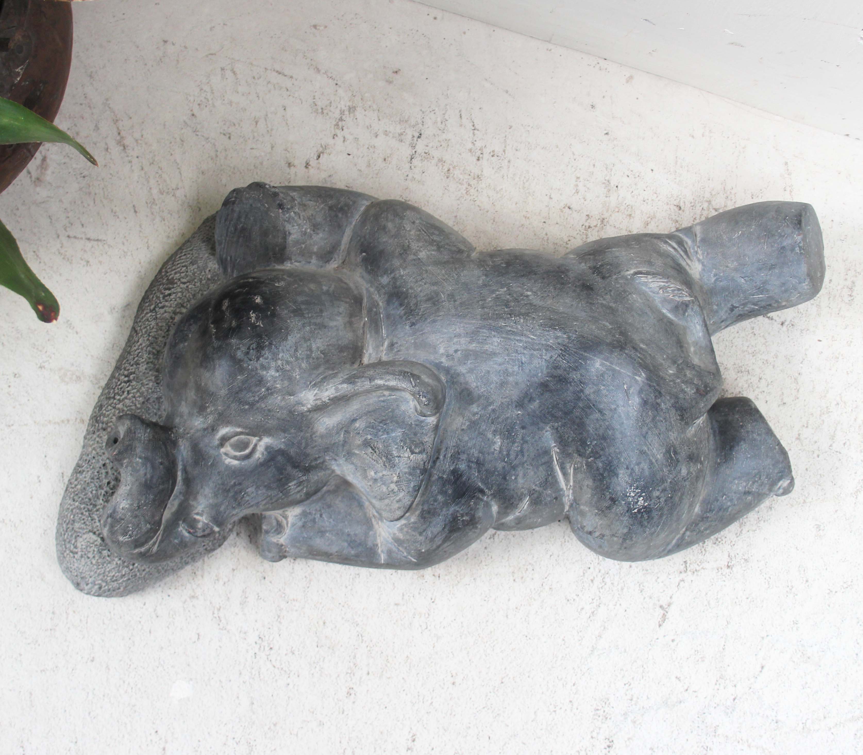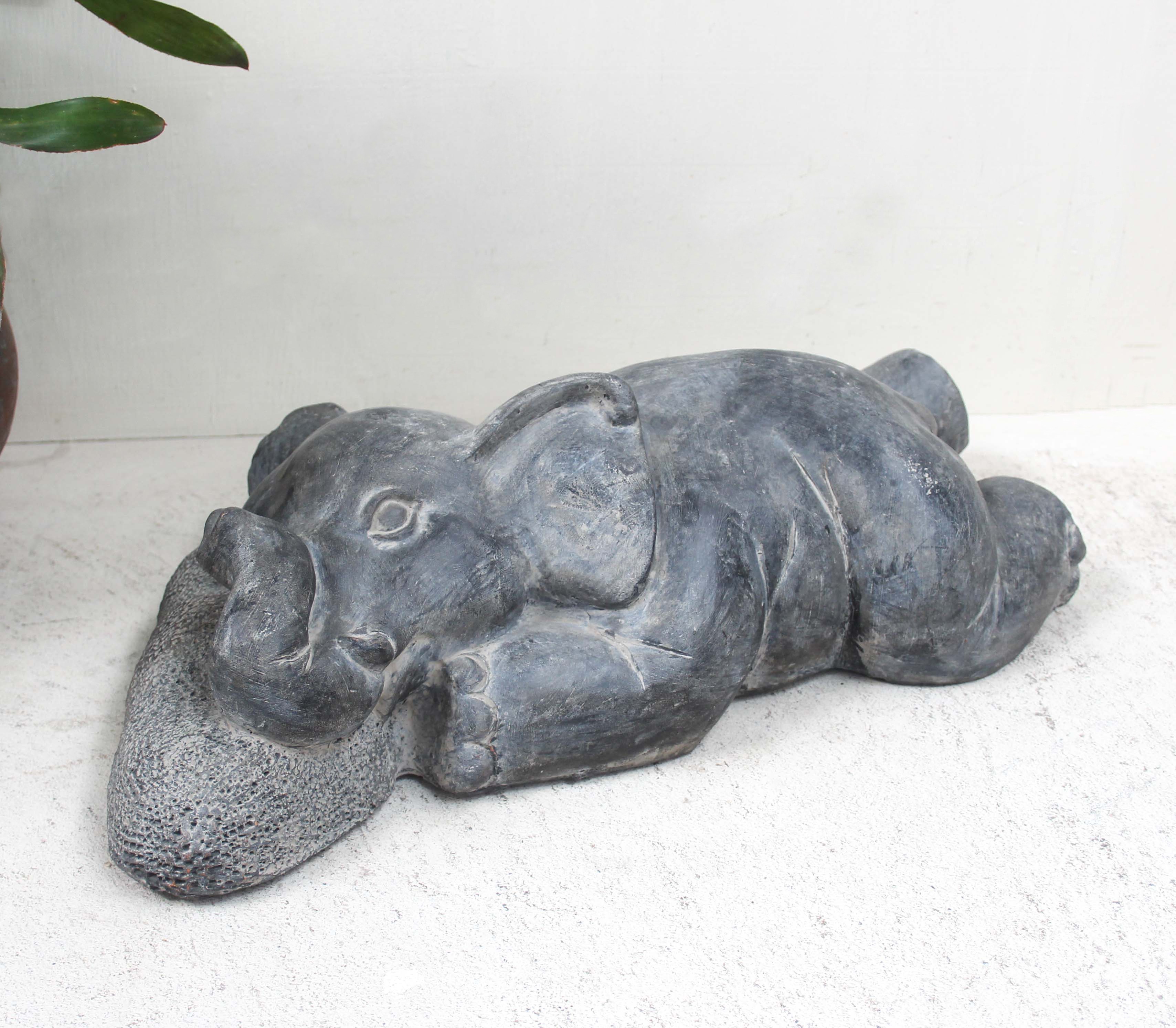 Ceramic sleeping elephant statue.