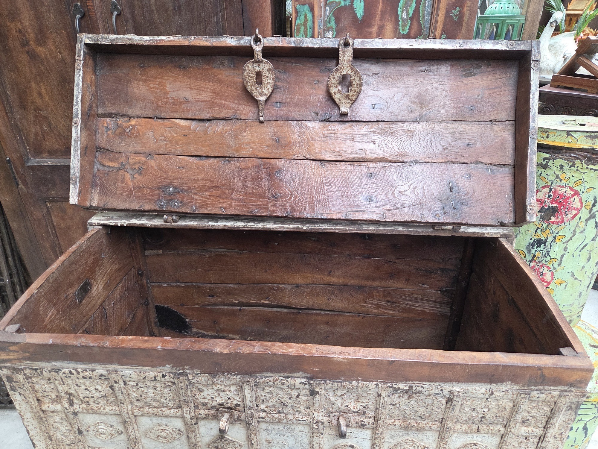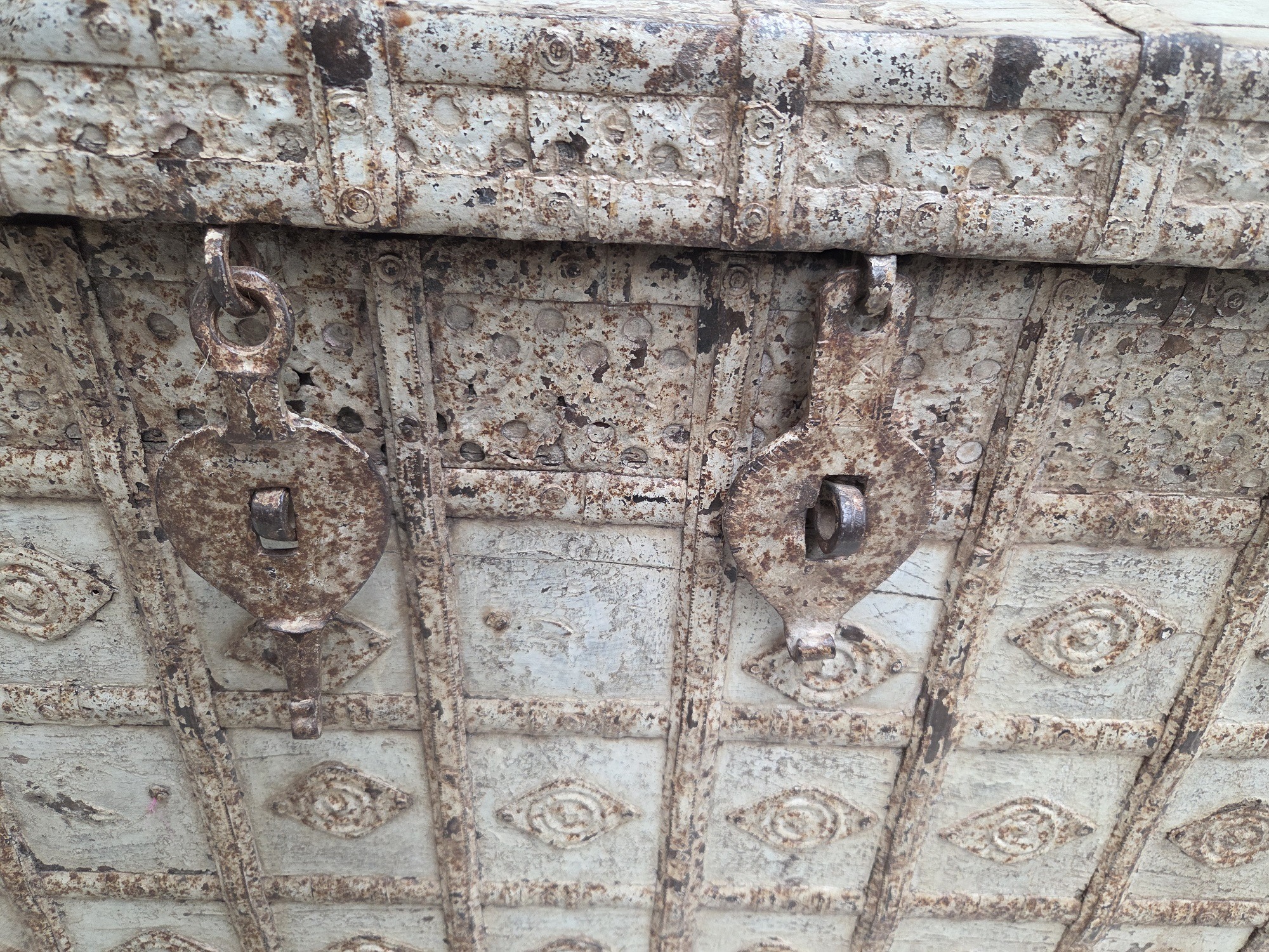This antique Pitara box is a beautiful example of a traditional Indian storage chest. These trunks were used to store valuables and family heirlooms. Today, original examples of this quality, are increasingly rare. Because of it’s age, there could be the odd imperfection which just adds to it’s authentic character and charm.
