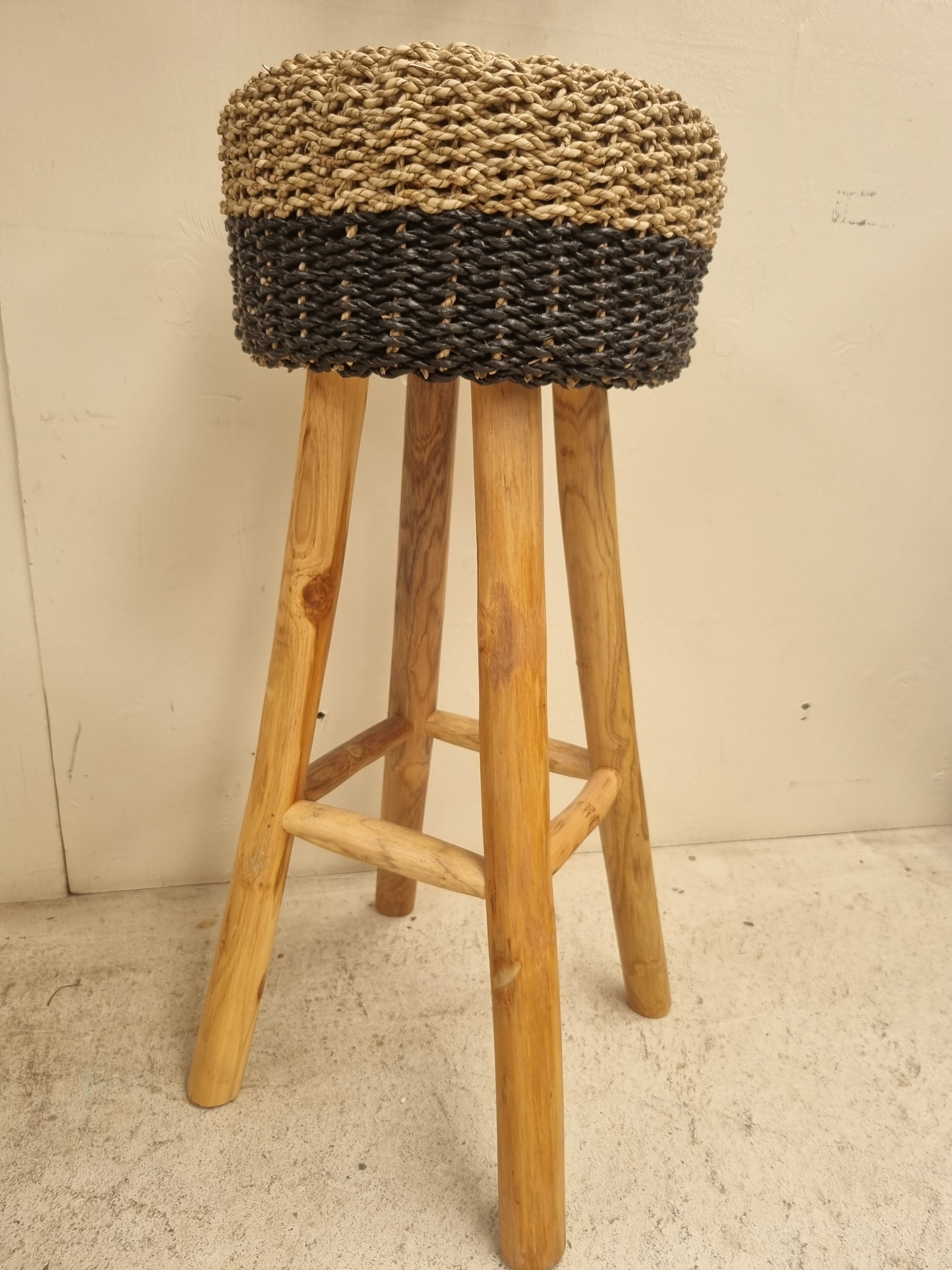 Tall rattan stool.