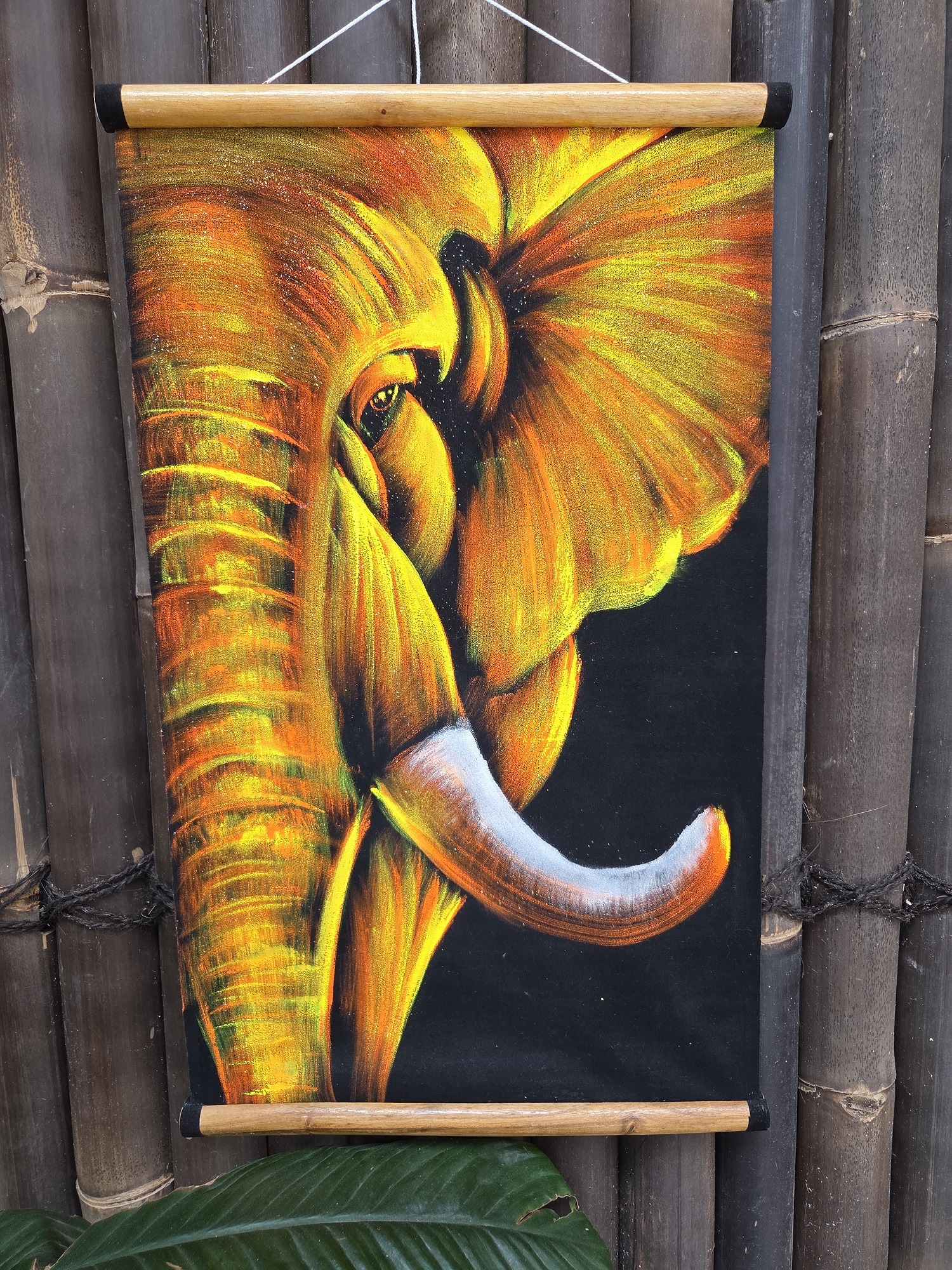 Beautiful hand painted velvet scroll for the wall.