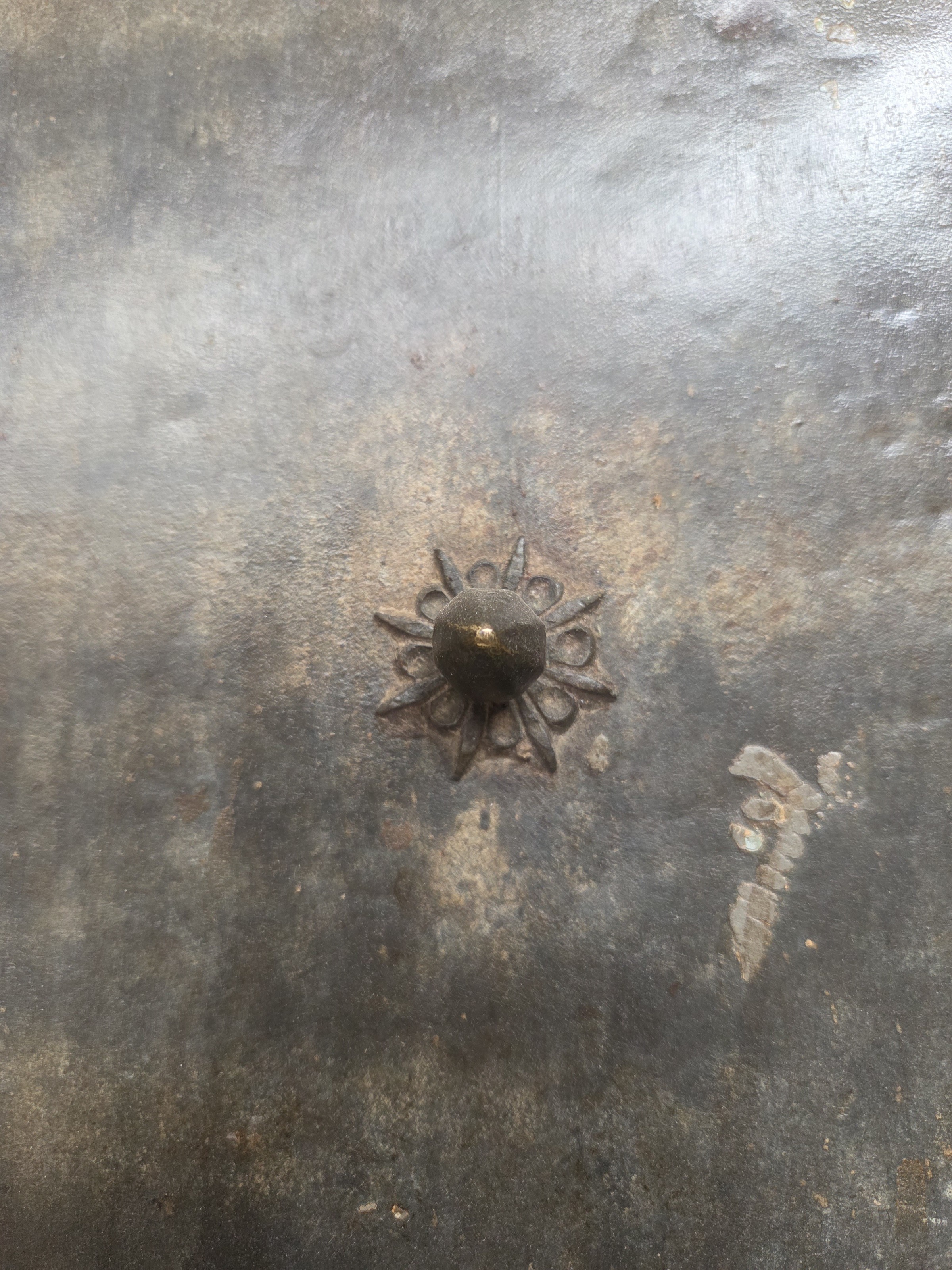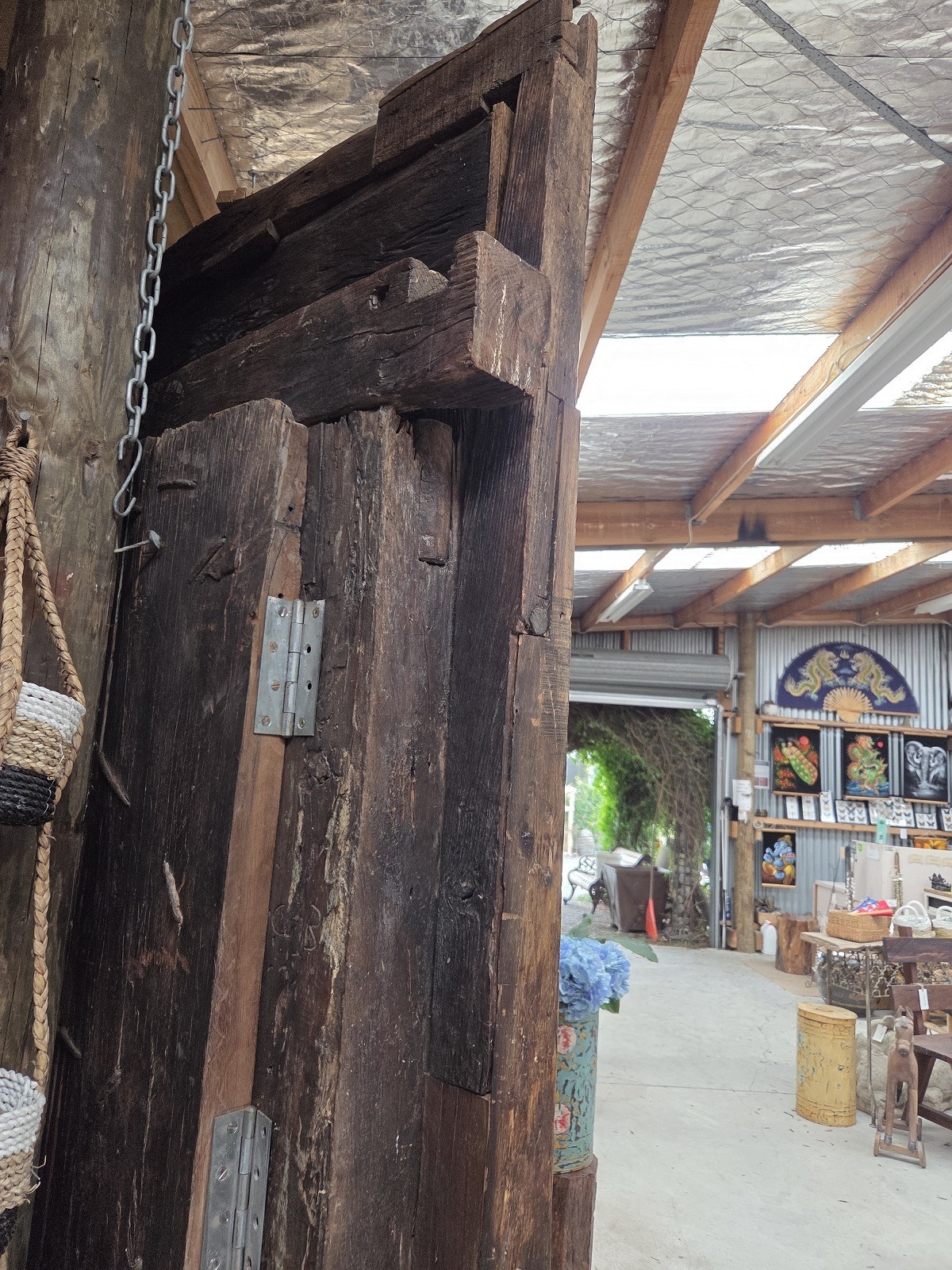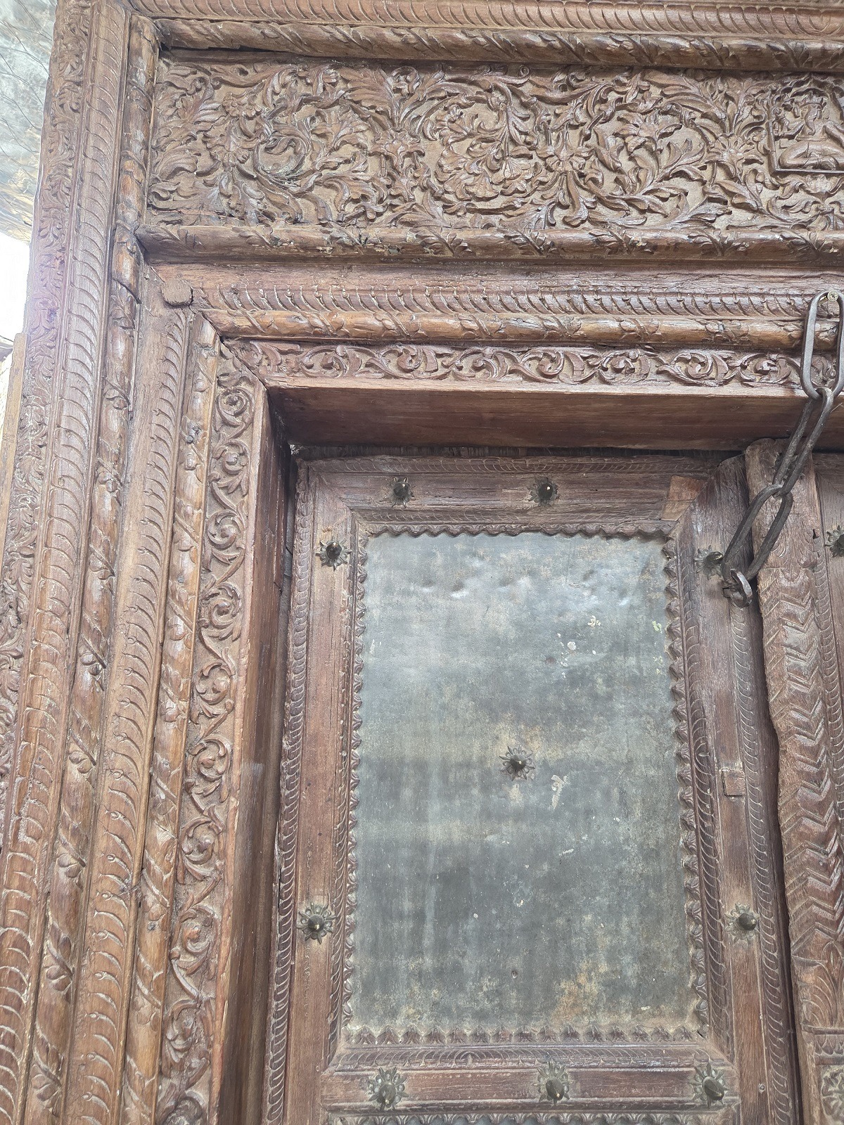 Beautiful, tin and carved wood vintage door from India.