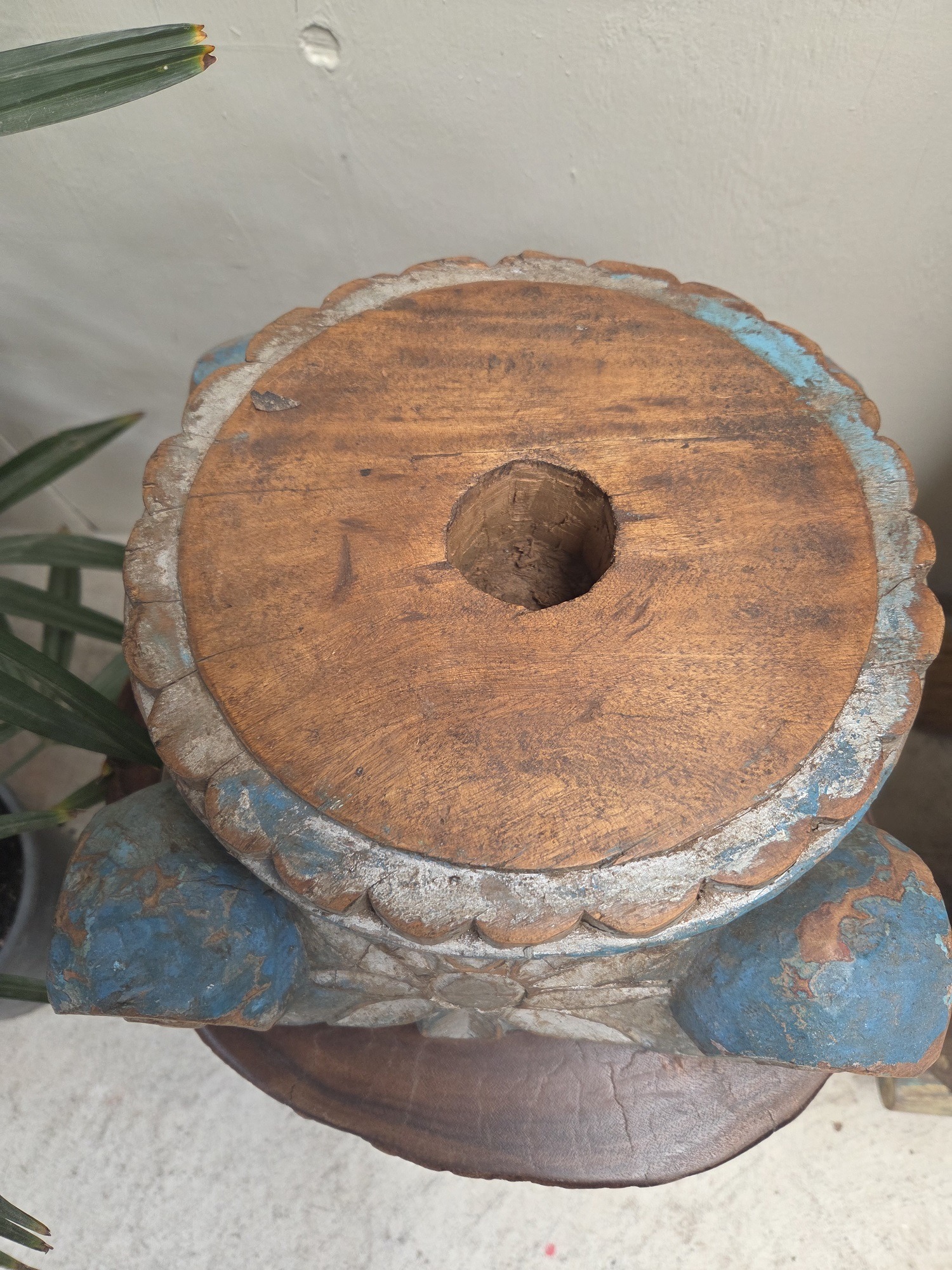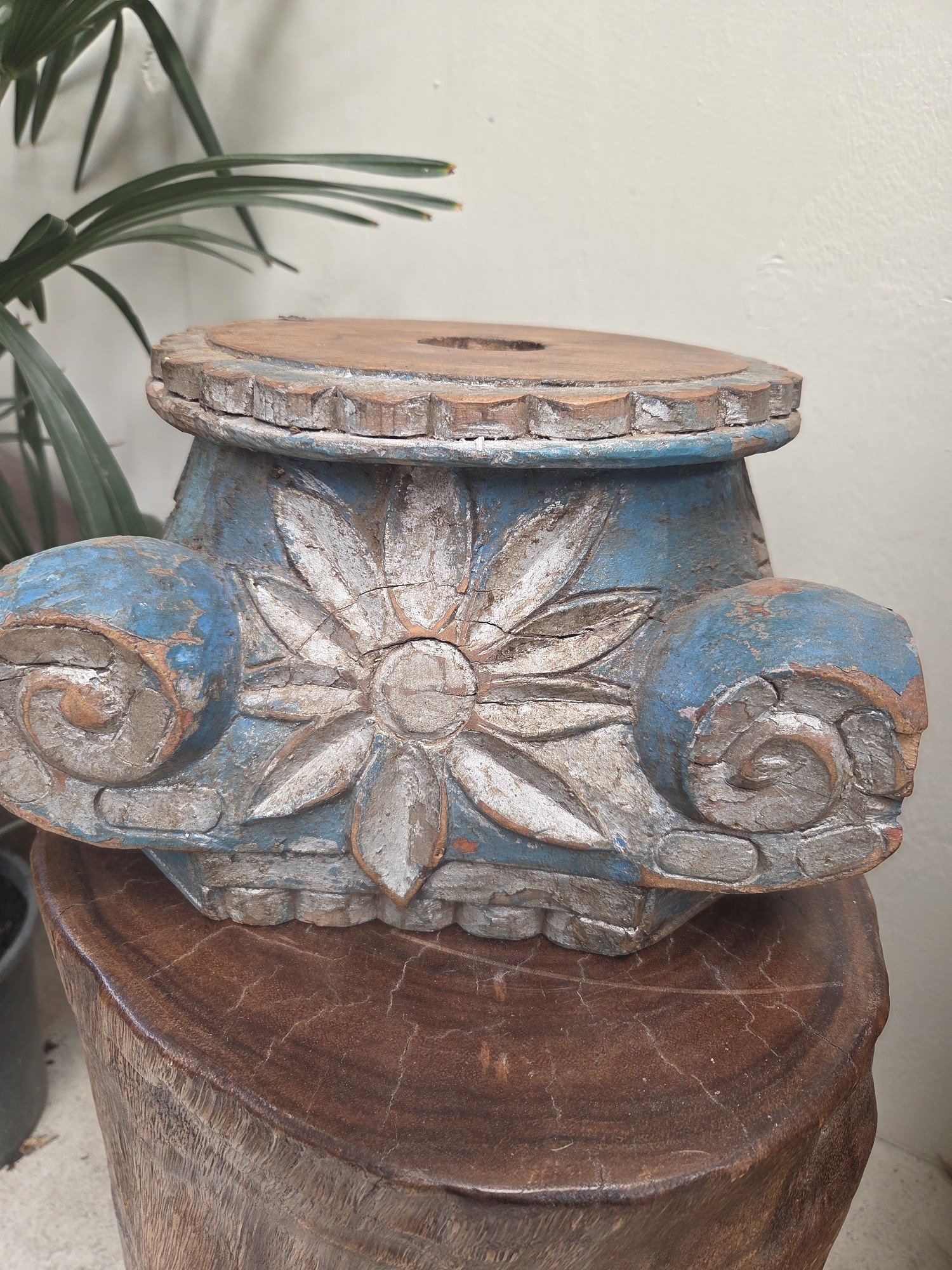 Vintage hand carved pillar/column base from India.